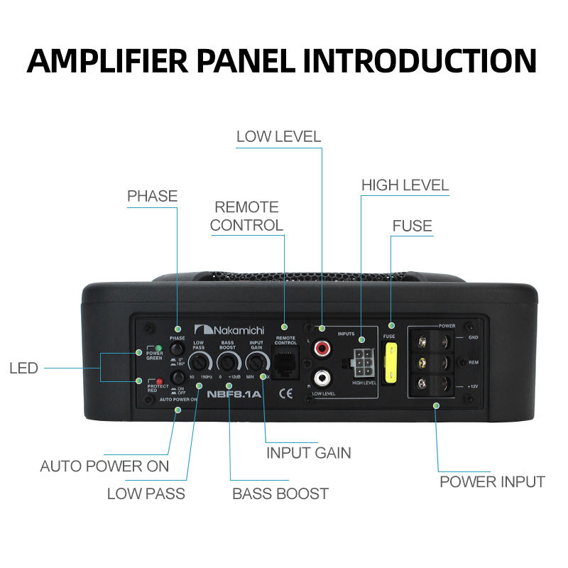 Caisson de basses actif pour voiture de 8 pouces, 150 W, haute performance, basses profondes, fin et compact pour la mise à niveau audio du véhicule