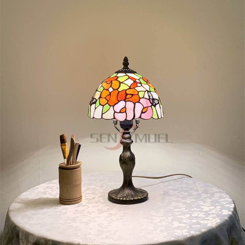 Lampes de table de bureau LED de style Tiffany de 8 pouces Vente en gros et vente directe de verre d'art de mosaïque d'église colorée à bas prix