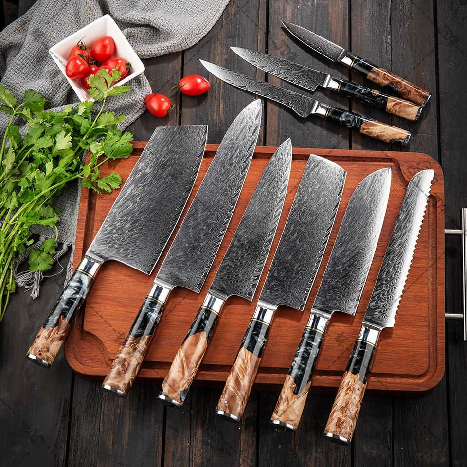 Couteau de chef de 8 pouces, couteau de cuisine en acier damas à 67 couches avec manche en bois