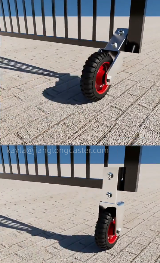 Roue de portail coulissant robuste de 8 pouces, roue en caoutchouc, roulettes pour portails de ferme, roue rigide pour portails tubulaires