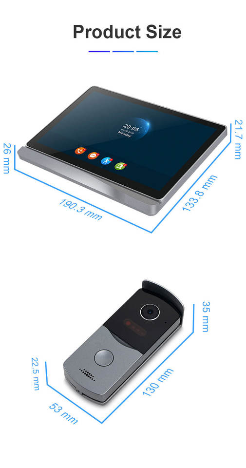 Visiophone de porte vidéo à écran HD IPS de 8 pouces, connexion Villa, téléphone de porte vidéo, système d'interphone de doigt, sonnette intelligente