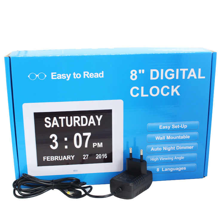Réveil numérique à grand écran LED de 8 pouces pour la perte de mémoire, la maladie d'Alzheimer, la démence, calendrier numérique, horloge de jour