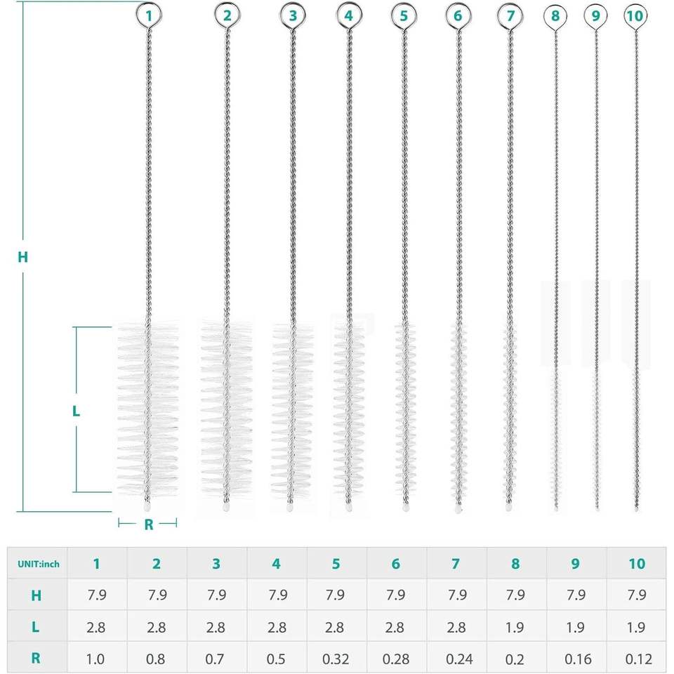 Ensemble de brosses en nylon de 8 pouces pour le nettoyage des bouteilles, avec crochet pour les bouteilles à col étroit, ensemble de 10 pièces