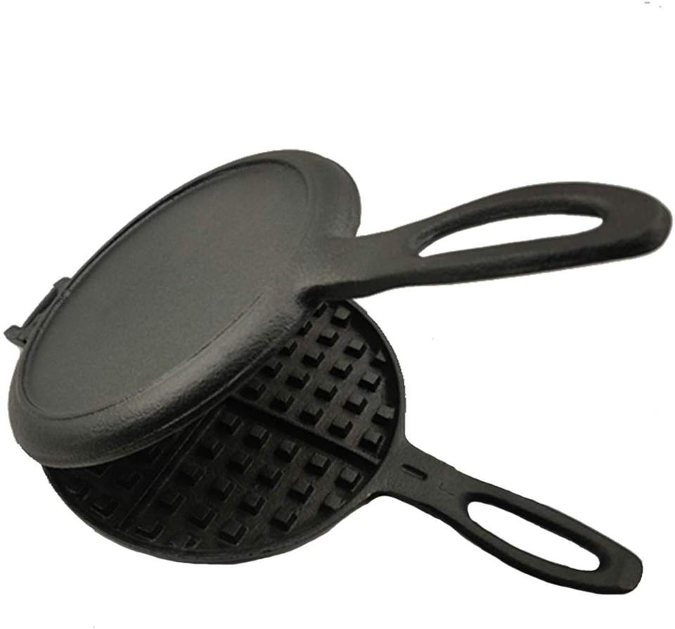 Poêle à gaufres panini de 8 pouces à l'ancienne en fonte ronde pré-assaisonnée