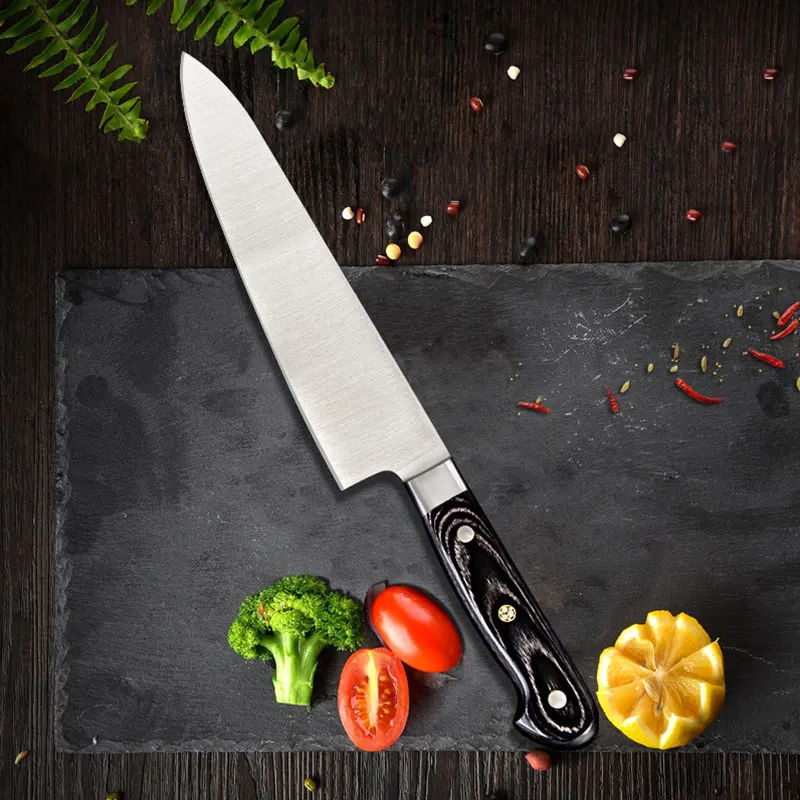 Couteau de chef Gyuto à manche en bois Pakka de 8 pouces, couteau de cuisine en acier inoxydable