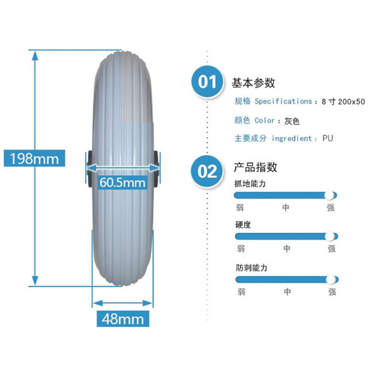 Roue en PU de 8 pouces pour accessoires de fauteuil roulant, roulettes haute résistance et résistantes à l'usure