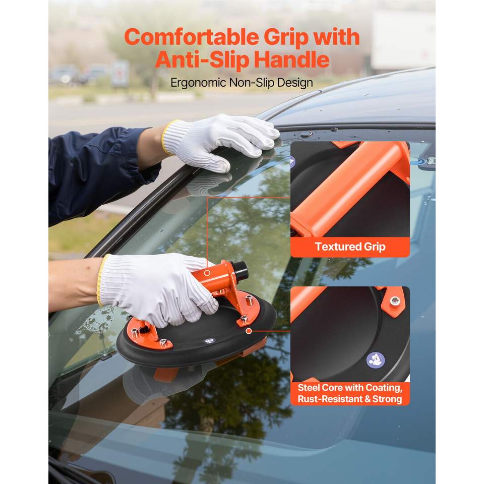 Ventouse de levage de verre sous vide de 8 pouces avec poignée métallique, capacité de levage maximale de 429 lb, outil de ventouse pour carrelage avec poignée de transport pour une utilisation pratique