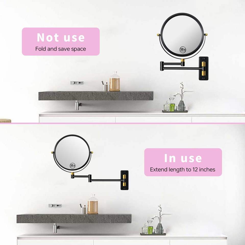 Miroir de maquillage mural de 8 pouces avec bras extensible pivotant à 360 degrés, grossissement 1X/10X, catégorie de produit : miroir de maquillage