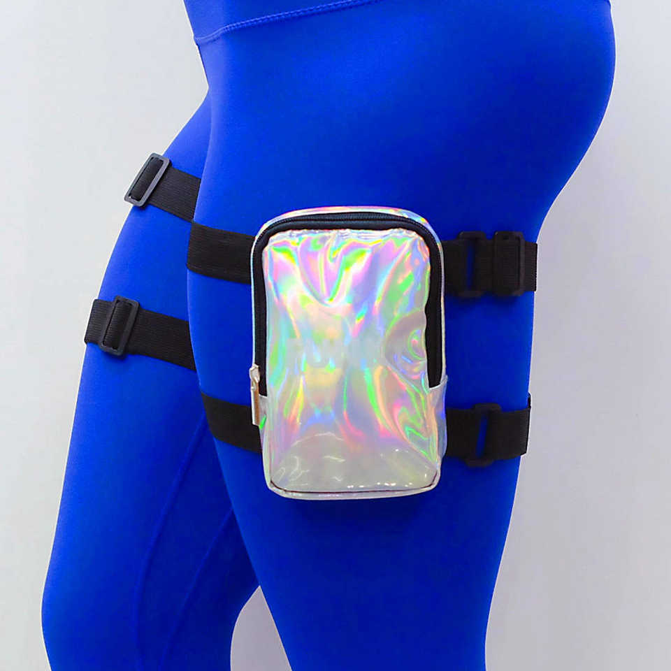 8 Pouces PU Holographique Goutte Jambe Sac Étanche Femmes Cuisse Sac Carnaval