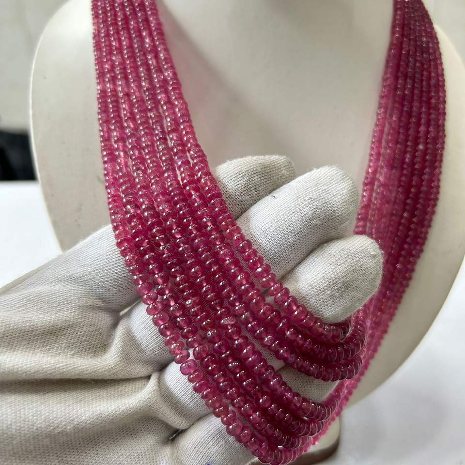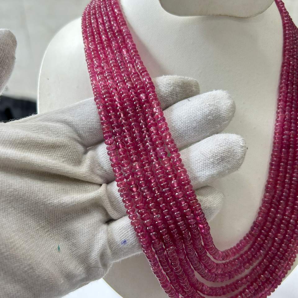 Perles de pierres précieuses naturelles rondes lisses en verre rubis de 8 pouces | 4,5x5,5 à 2,5x4,5 MM | Rubis pour la fabrication de bijoux
