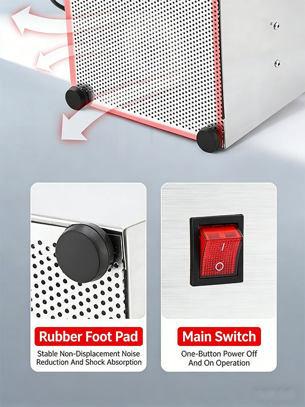 Protection contre la surchauffe, Bouton d'arrêt d'urgence, Contrôle de vitesse réglable, Bol amovible