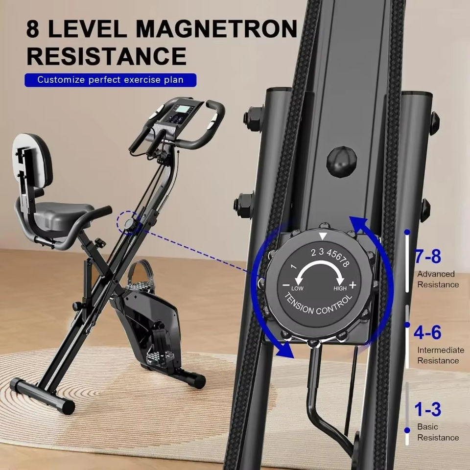 Écran LCD pliable à 8 niveaux de résistance Vélo d'intérieur Spin Bike Entraînement physique à domicile avec capteurs de fréquence cardiaque