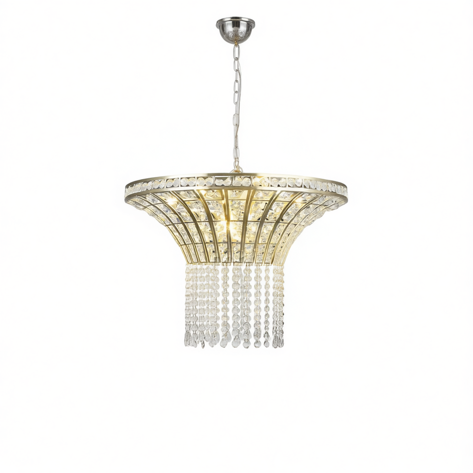 Lustre cascade en cristal transparent à 8 lumières, 23,6 pouces de large, doré, pour salon