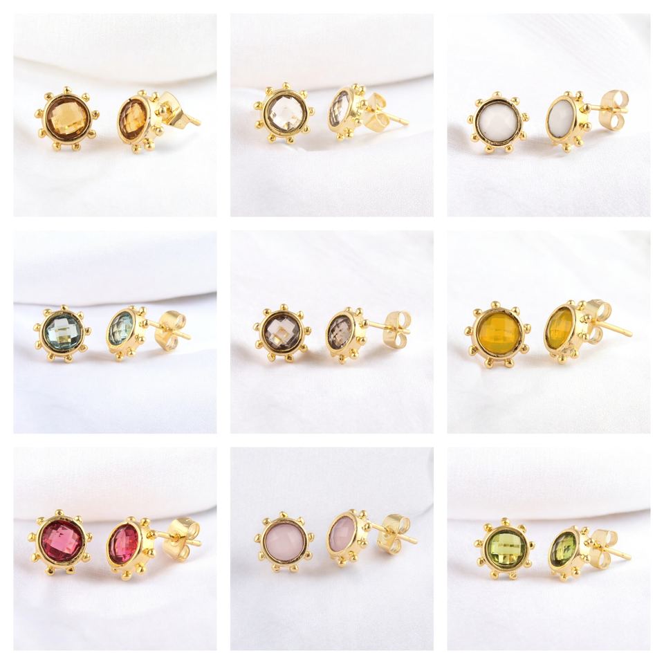 8 MM Rond Aqua Quartz Gemstone Fashion Studs Boucles d'oreilles-Boucles d'oreilles tendance en argent 925-Bijoux en gros