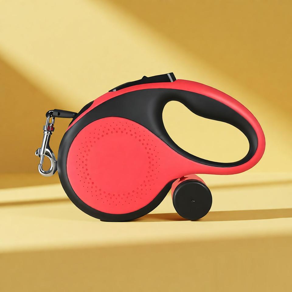 Laisse de chien rétractable de luxe personnalisée, durable, à double ton rouge/noir, de 8 mètres, avec porte-sac à déjections rapide, écologique, 50 kg