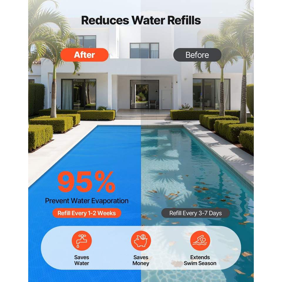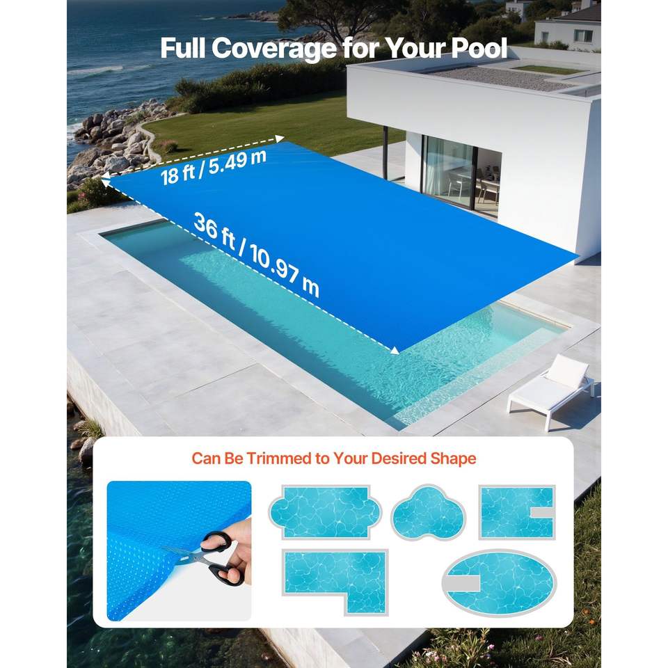 Bâche solaire rectangulaire en PE de 8 mil, 36 x 18 pieds, à bulles pour absorption de chaleur diurne, pour piscines et enrouleurs