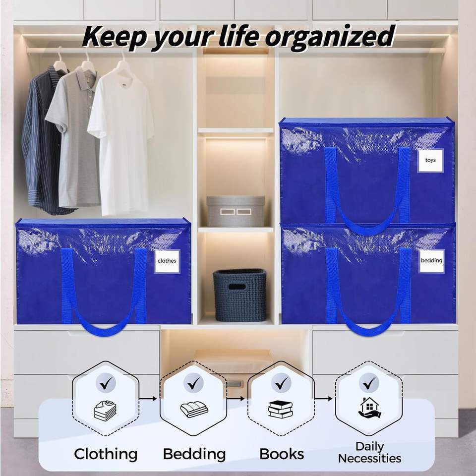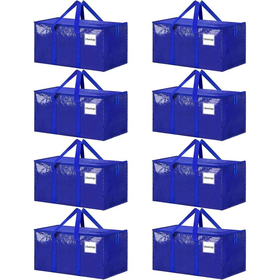 Lot de 8 boîtes de déménagement extra-larges et robustes, bacs de rangement bleus, poignées renforcées, fermetures éclair robustes, sacs de rangement multi-usages
