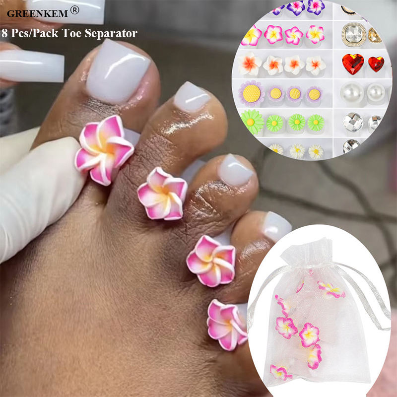 8 pièces/paquet séparateur d'orteils mignon en silicone souple outils de verrouillage des orteils marguerite en forme de coeur strass Style japonais séparateur d'orteils à ongles
