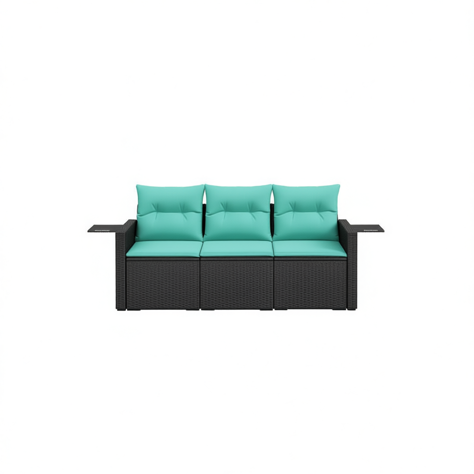 Ensemble de canapé de jardin en polyrotin noir avec coussins, 3 places, mobilier d'extérieur, design contemporain