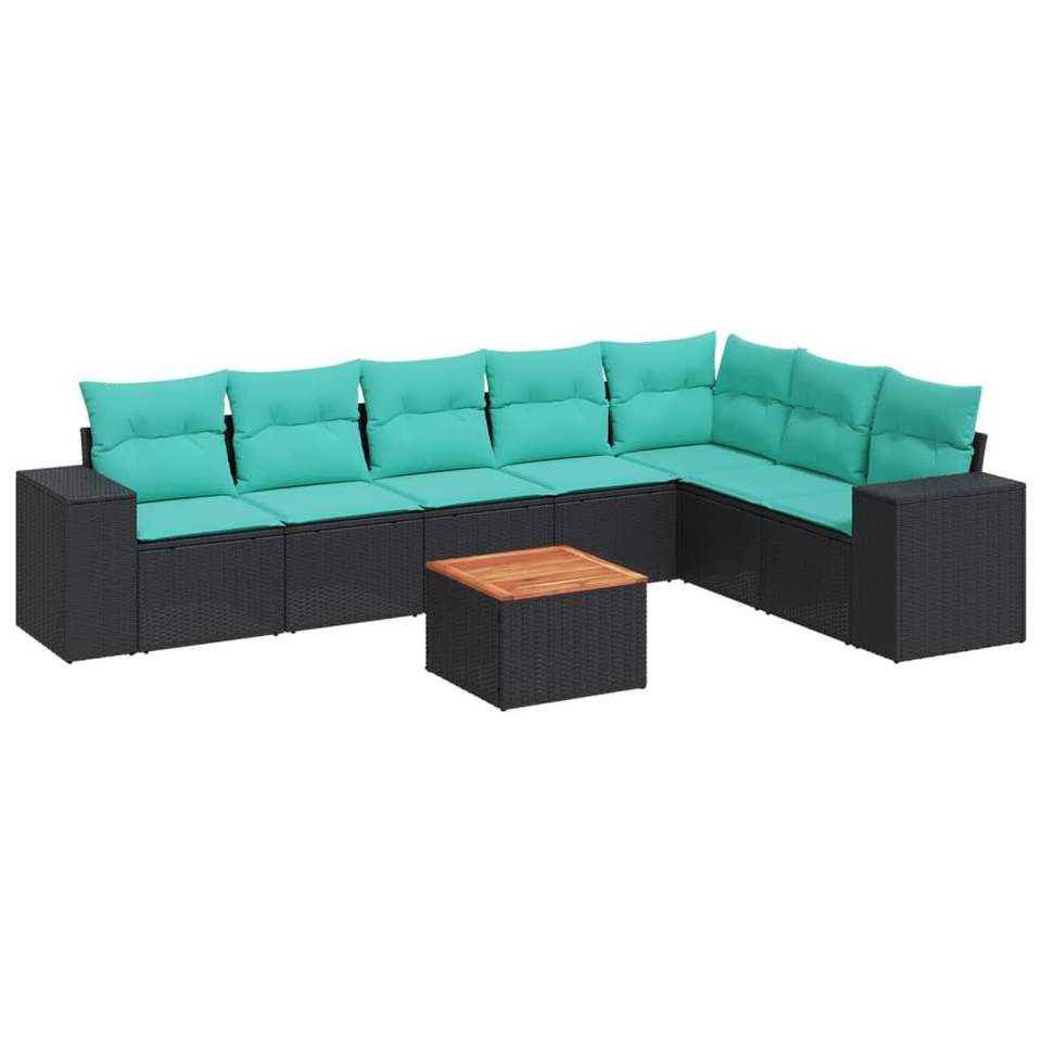 Ensemble de canapés de patio en polyrotin noir, 8 pièces, avec coussins, canapés de jardin