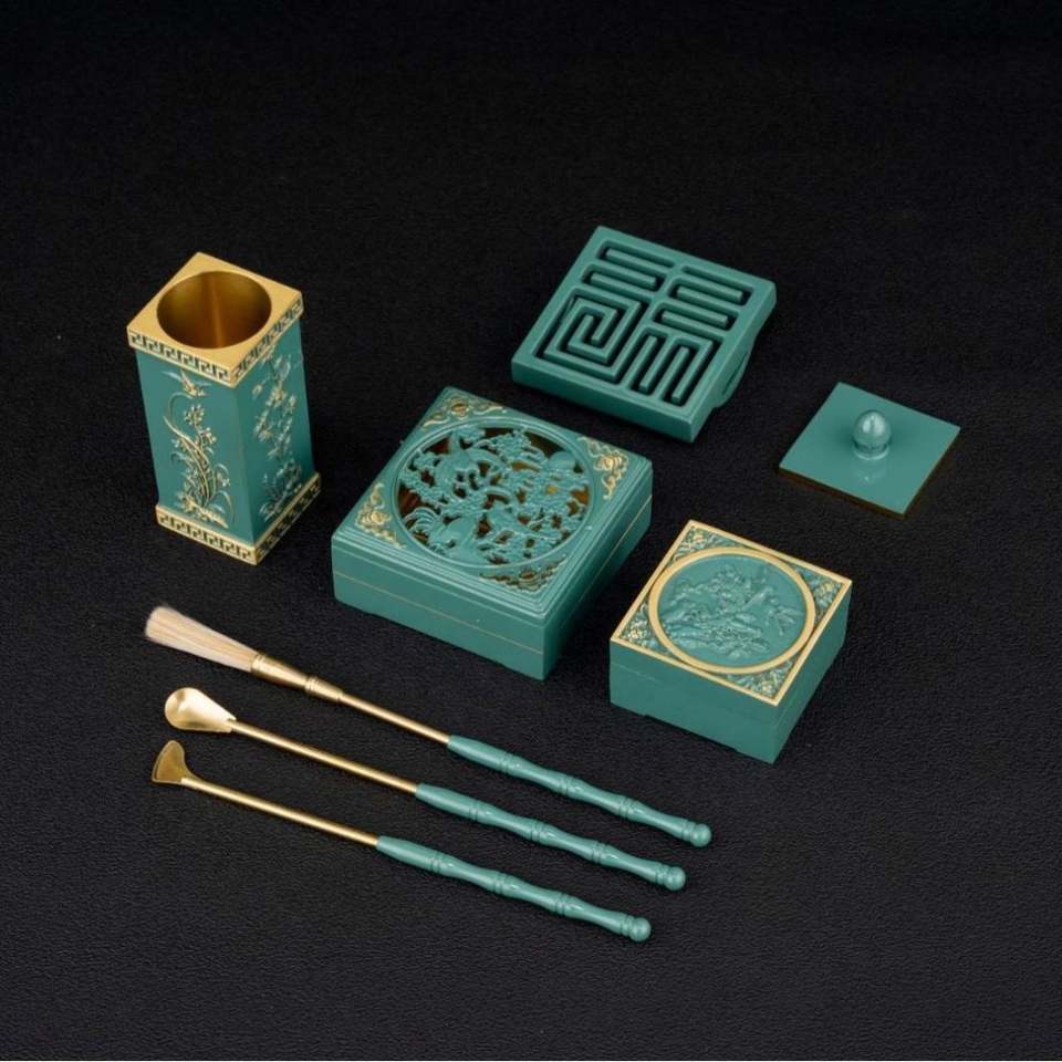 Kit de fabrication d'encens en laiton 8 pièces tour de refoulement bricolage avec outils de moule d'encens et brûleur d'encens en poudre pour usage aromatique