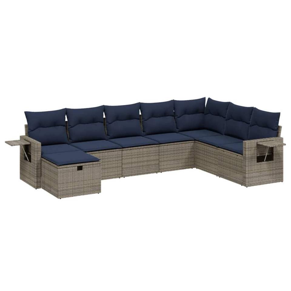 Ensemble de canapés de patio en polyrotin gris, 8 pièces, avec coussins, canapés de jardin