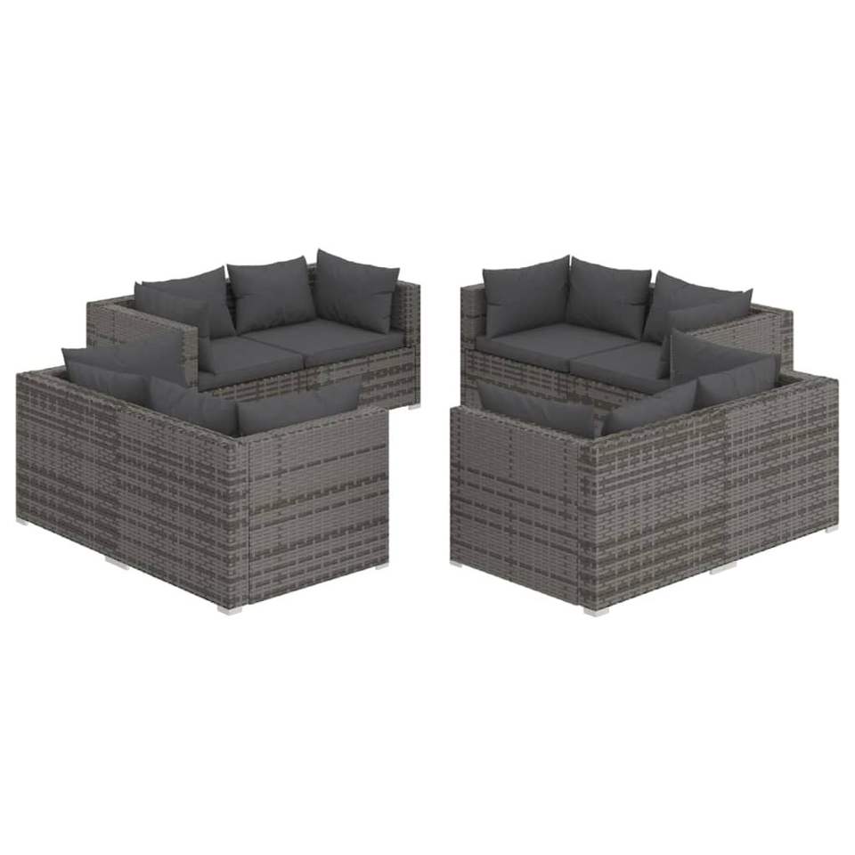 Ensemble de salon de jardin modulaire en rotin PE gris 8 pièces, design modulaire pratique