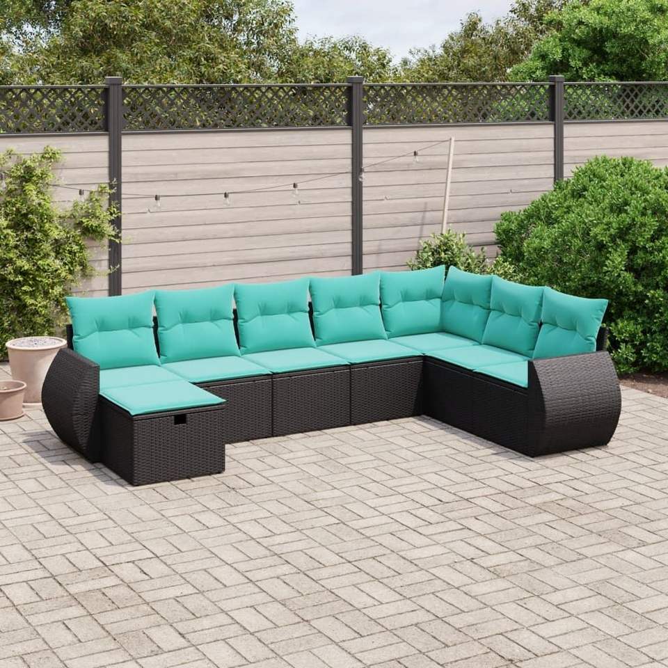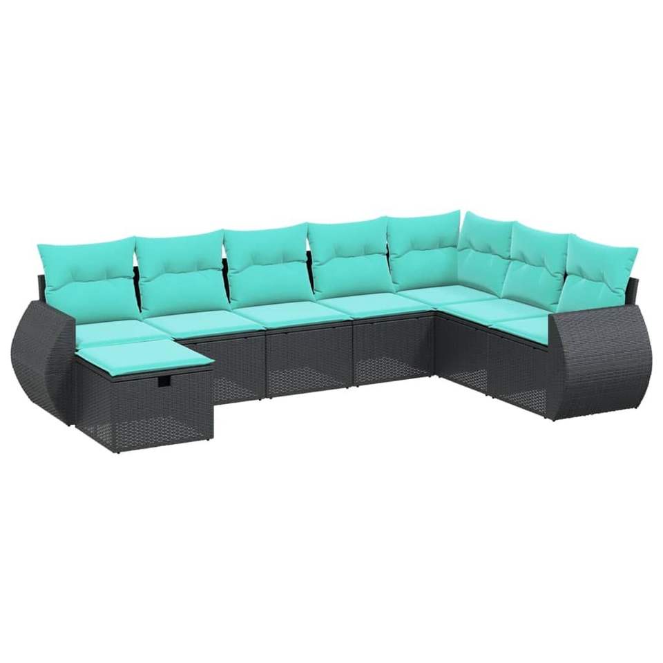 Ensemble de canapés de jardin modulaires en polyrotin noir 8 pièces, canapés de jardin modulaires modernes 8 pièces