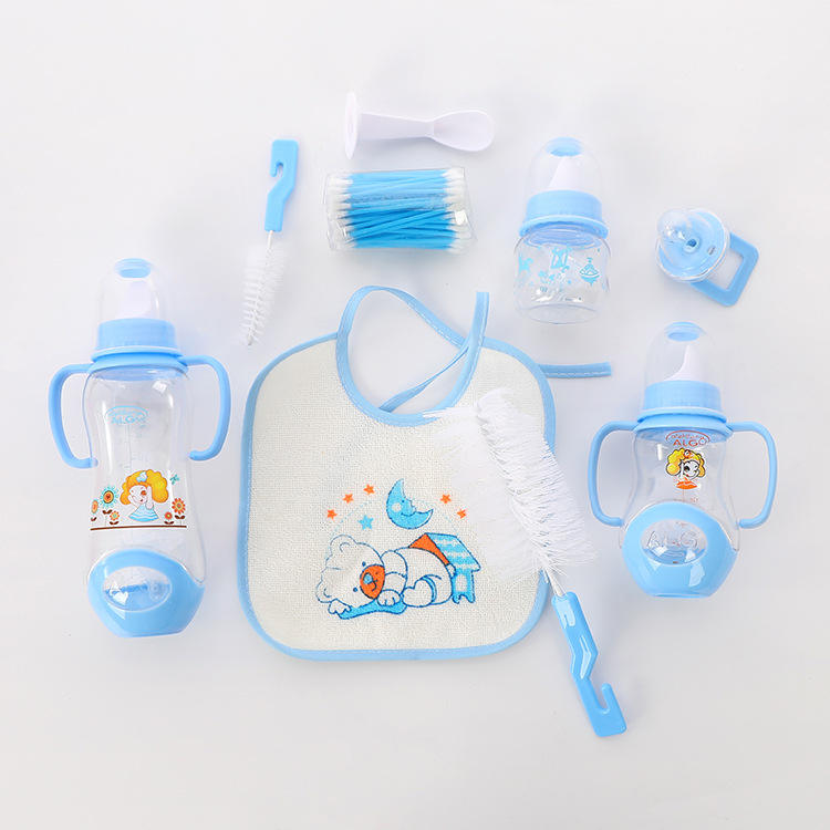 8 pièces nouveau-né ensemble dessin animé à motifs silicone salive serviette bouteille brosse coton-tige pour le soin du biberon