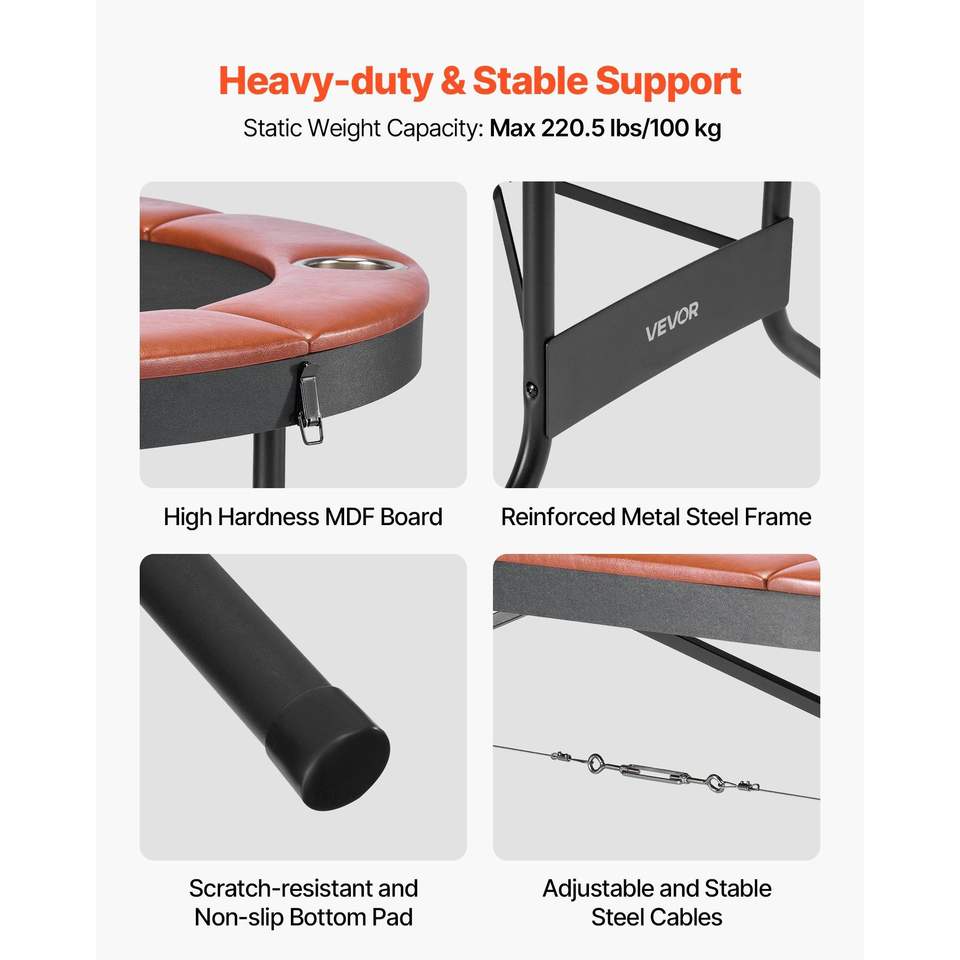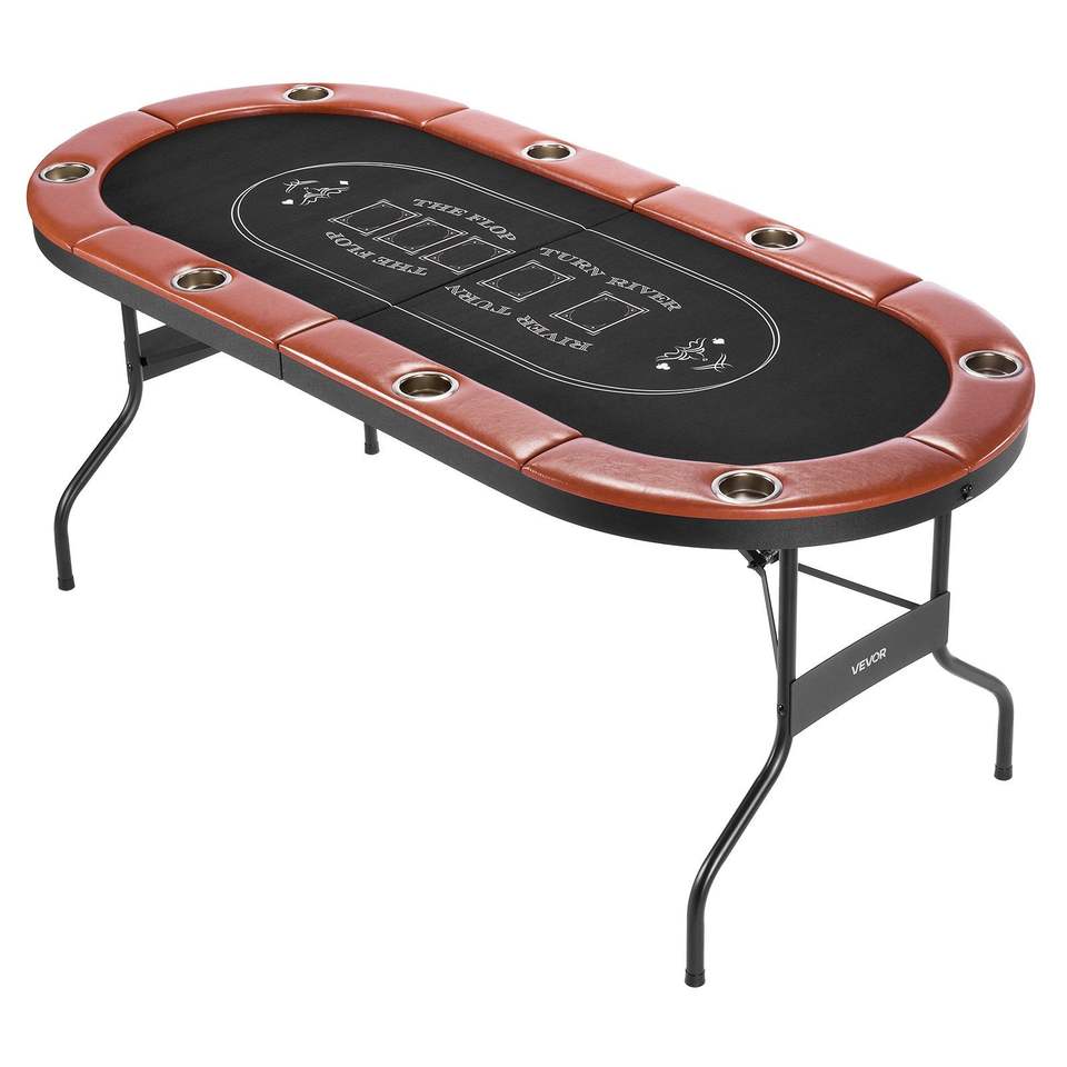 Table de poker pliable pour 8 joueurs, 72 pouces, avec rails rembourrés et porte-gobelets, table de jeu ovale portable pour la maison ou le casino