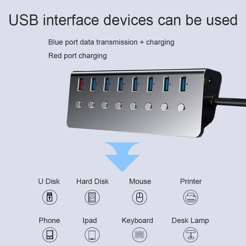 8 Ports USB 3.0 Splitter 7 Port Ordinateur HUB USB Prolongée 1 Port Rapide De Charge AdapterAluminum Alliage