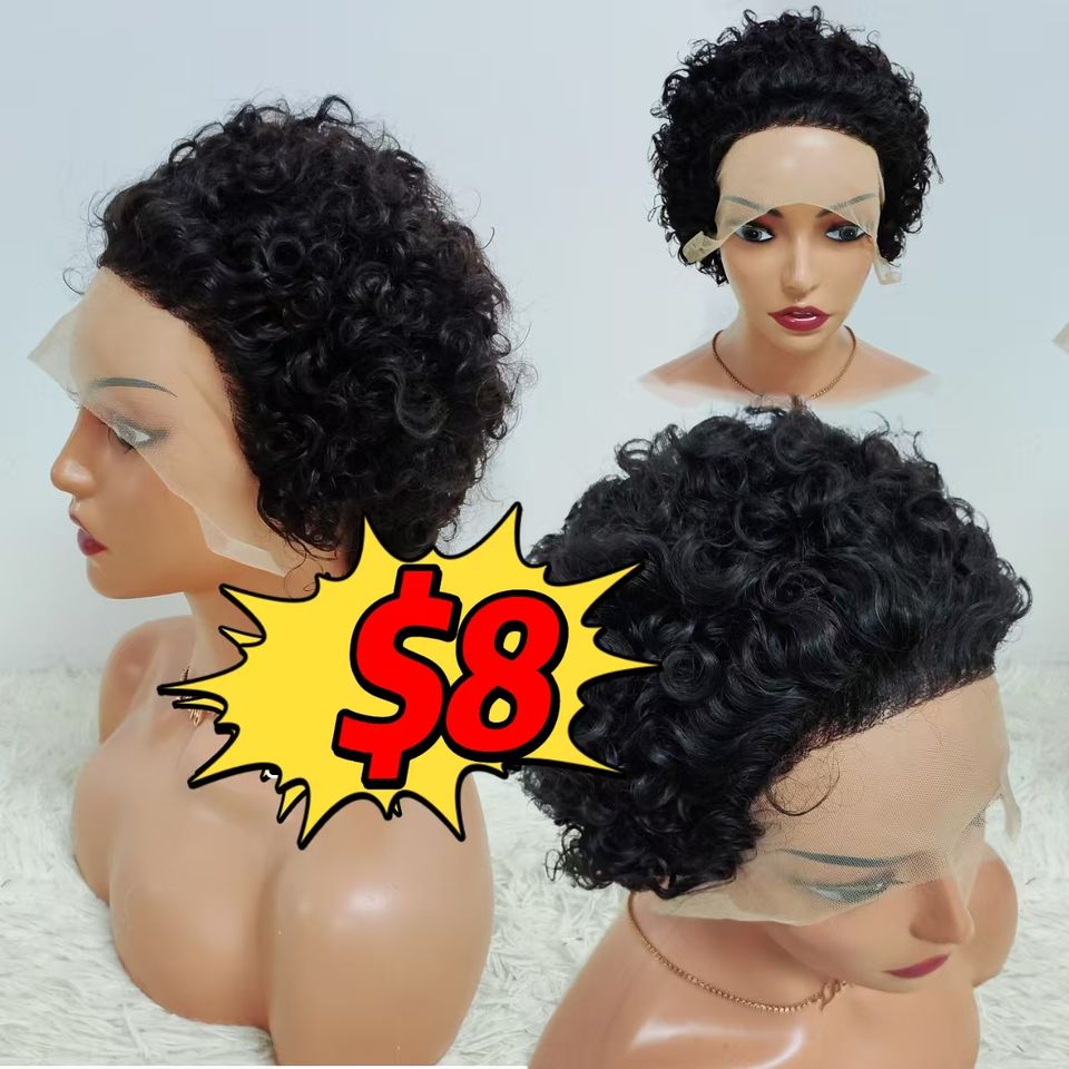 Promotion à 8 $ : Perruques bouclées Letsfly Pixie, Lace Frontal 13x1, 100% Cheveux Humains, Perruque Courte Afro Bouclée, Cheveux Remy Colorés, Livraison Rapide
