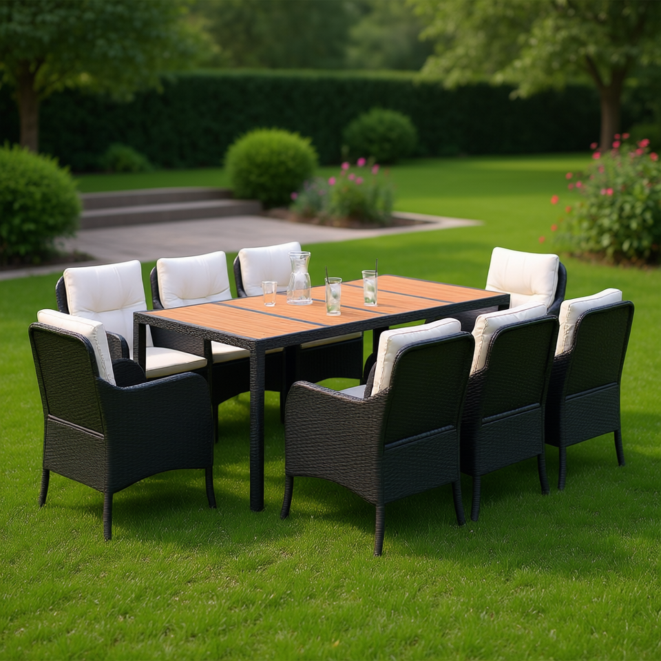 Ensemble de salle à manger de jardin 8 places en rotin PE noir avec housses amovibles, mobilier d'extérieur au design contemporain