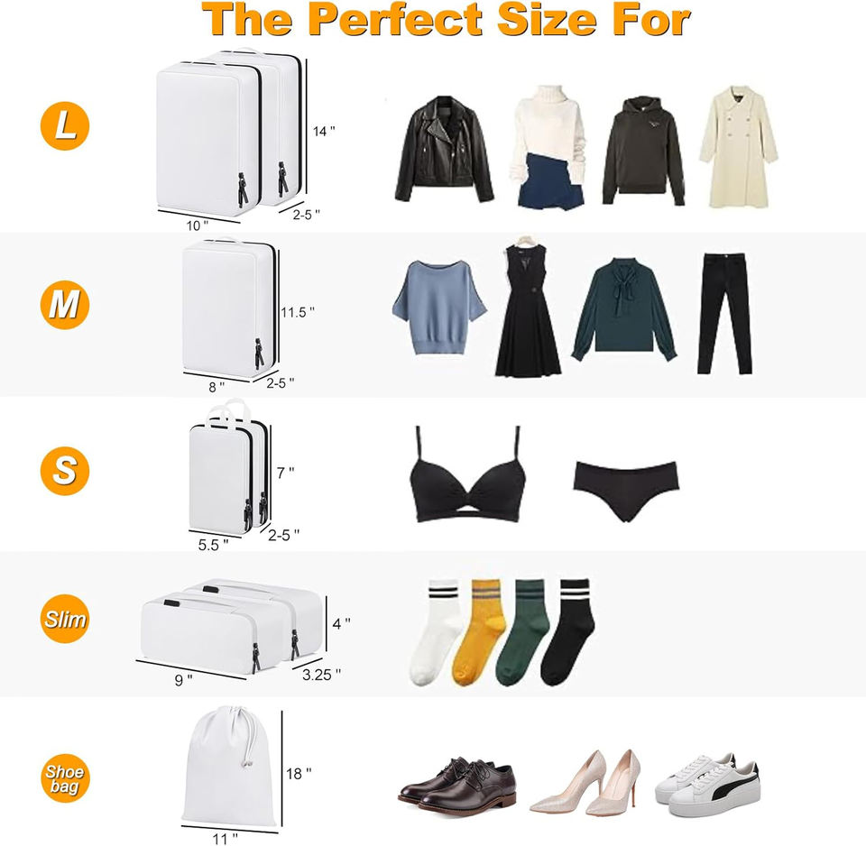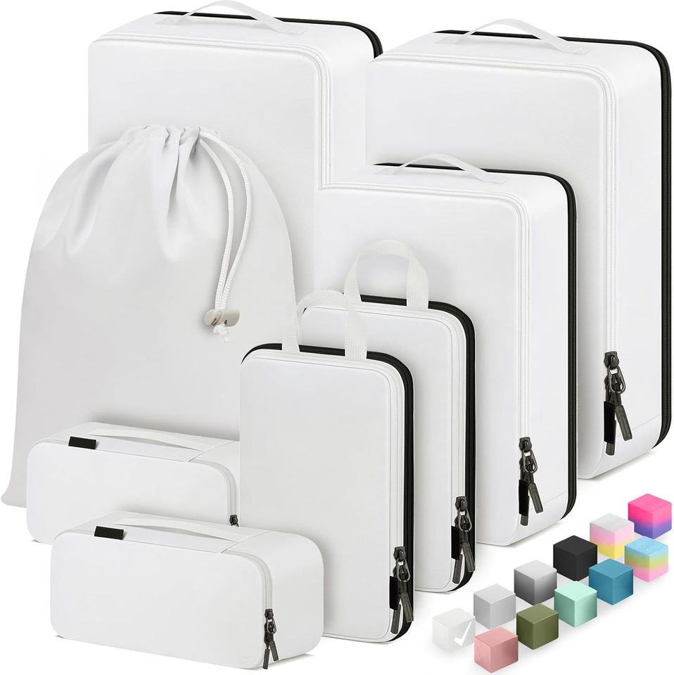 8 ensembles de cubes d'emballage de compression portables fermeture à glissière organisateurs de bagages étanches pour le voyage pour les bagages de cabine enregistrés