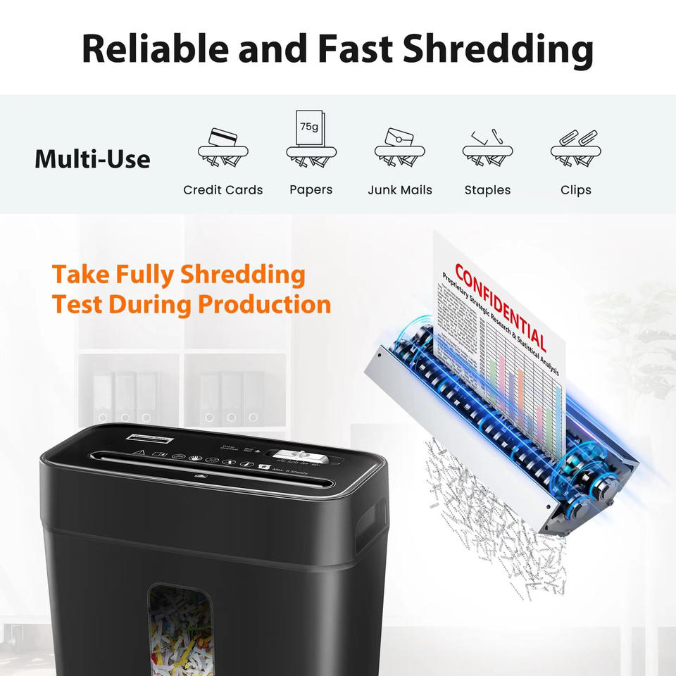 Déchiqueteuse de papier à coupe transversale P-4, 8 feuilles, pour la maison et le bureau, bac de 11,5 L, silencieuse, électrique, de bureau, pour documents A4
