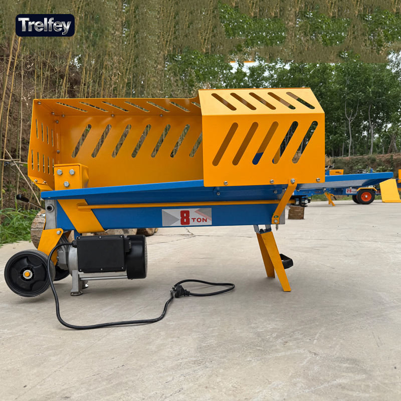 Fendeuse à bois électrique horizontale de 8 tonnes avec protection de sécurité 220V pour le traitement du bois de chauffage à la maison et au jardin