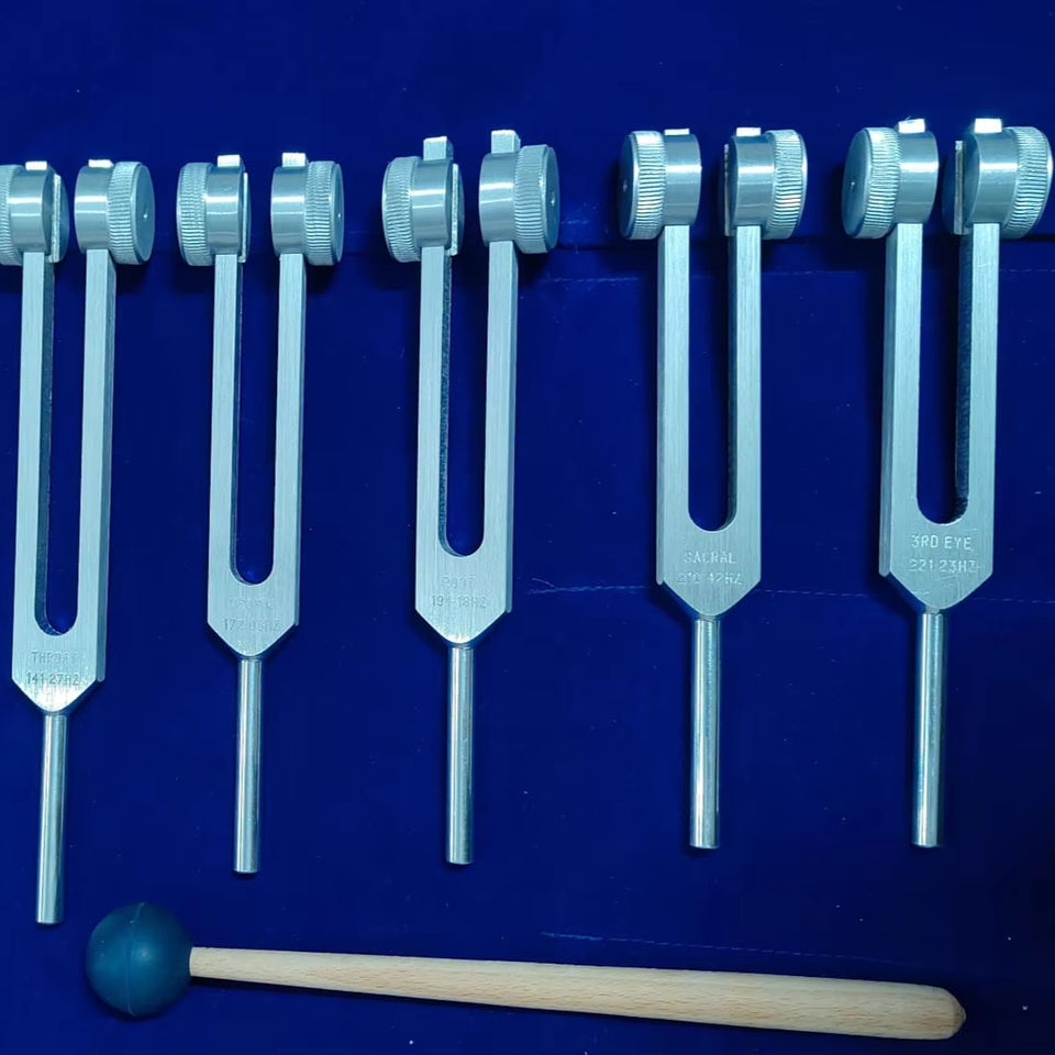 Ensemble de 8 diapasons lestés pour la thérapie sonore, guérison des chakras, cœur, troisième œil, sacral