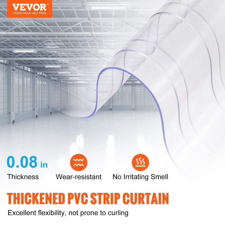 Porte de rideau en PVC de 8 \ "largeur 0.08 \" épaisseur plastique nervuré transparent 150 'longueur rouleau en vrac pour entrepôts centres commerciaux