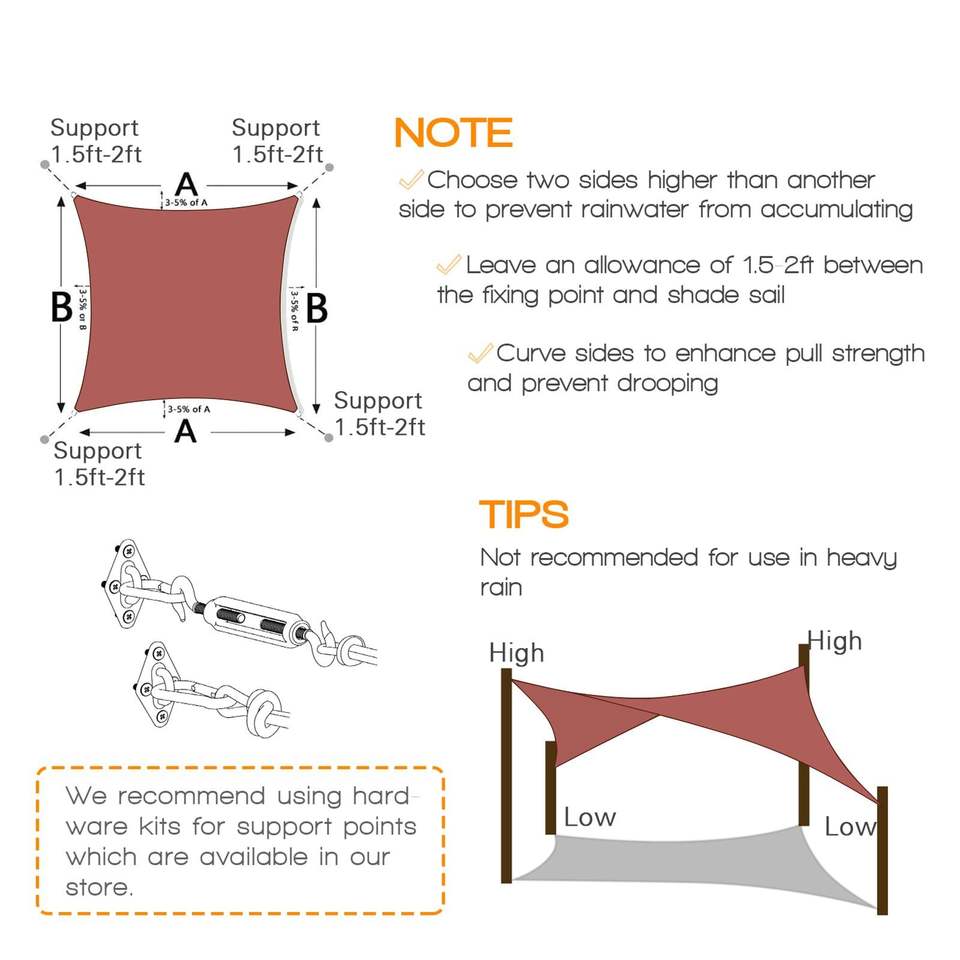 8 X 10 Rust Red HDPE Sunshade Sail Stylish Shade Sails & Nets