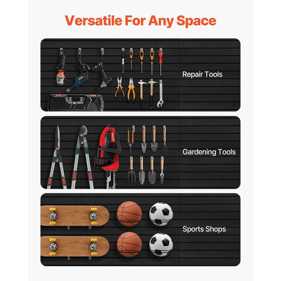 8 X 4 ft PVC Black Garage Slatwall Paneling Modular Design Tool Storage Easy Installation