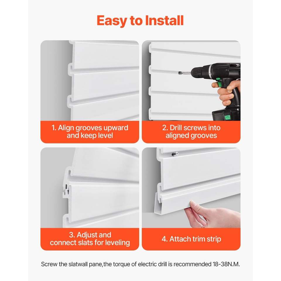 8X4 pi PVC Blanc Garage Slatwall Lambris Préfabriqué Accessoire Riche Stockage avec Latte Mur Accessoires Accessoires Modèle D0100X3IFLT