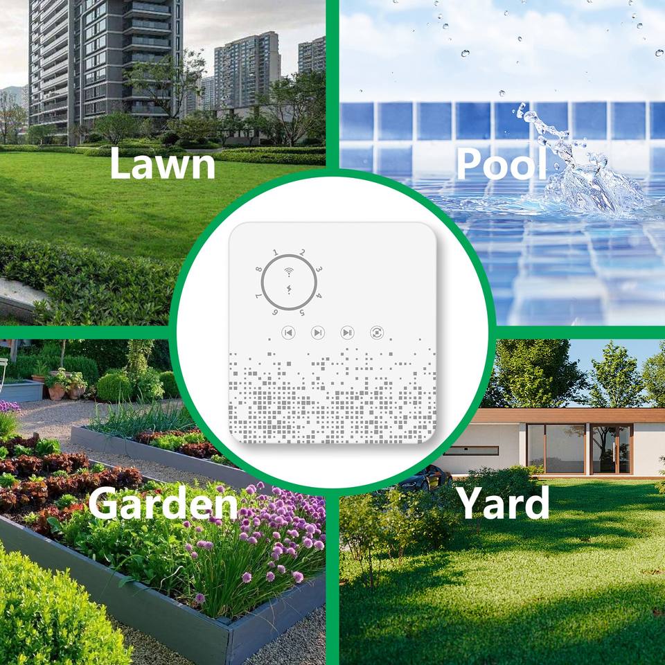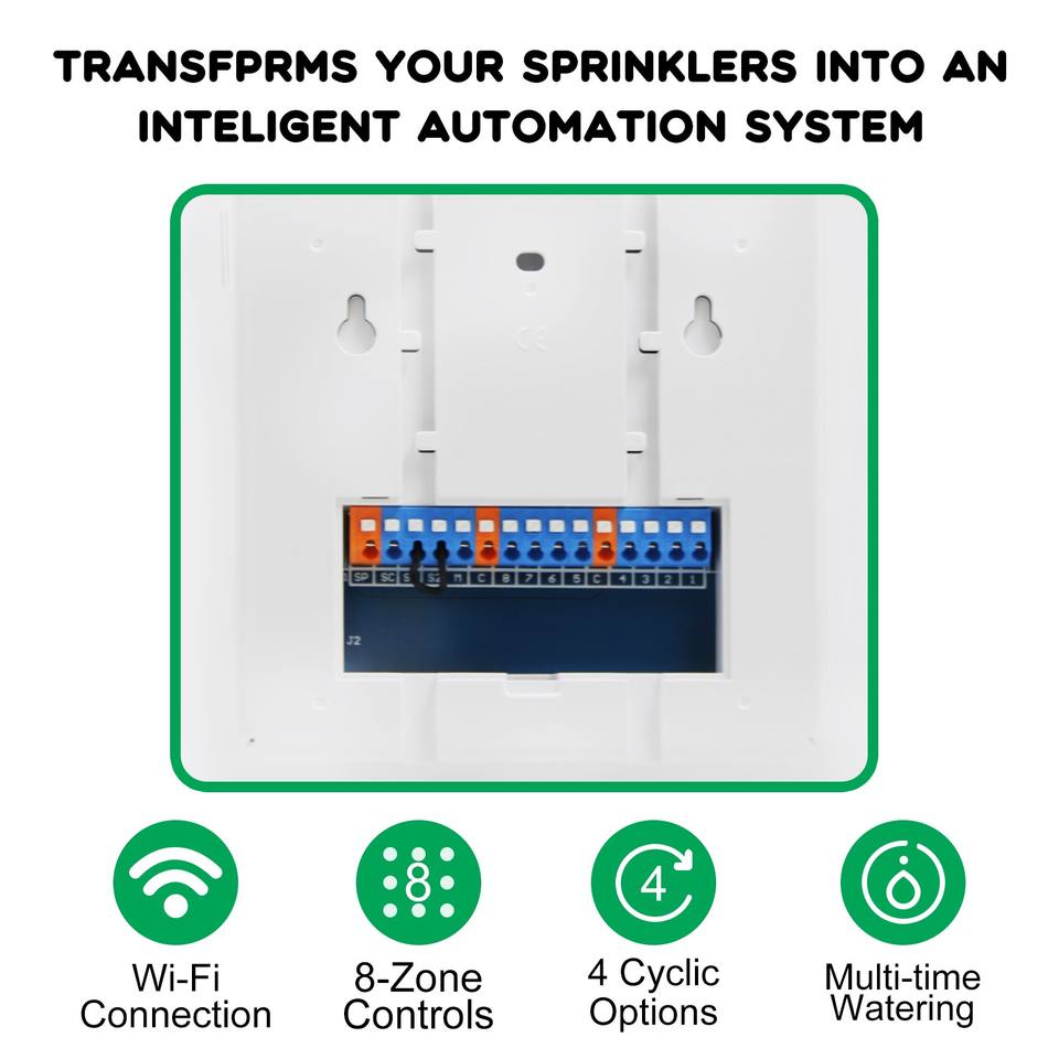 Contrôleur d'arrosage intelligent 8 zones compatible Alexa, commande vocale, contrôle par application iOS/Android, minuterie d'irrigation WiFi pour la maison, garantie 1 an