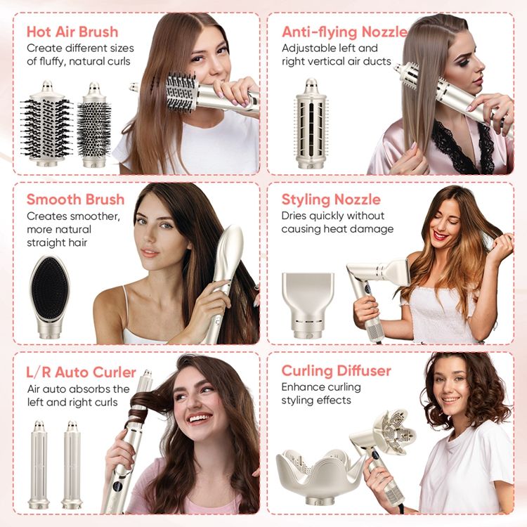 Brosse à air chaud haute vitesse 8 en 1 pour la maison ou le salon, sèche-cheveux, lisseur, fer à boucler, multi-styler pour cheveux