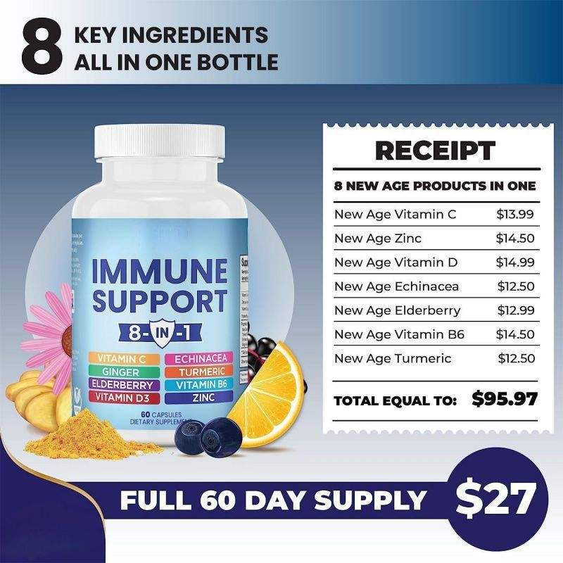 Complément alimentaire OEM 8-en-1 : Capsules de soutien immunitaire avec Échinacée, Zinc, Vitamine D 5000 UI, Curcuma, Curcumine et Gingembre