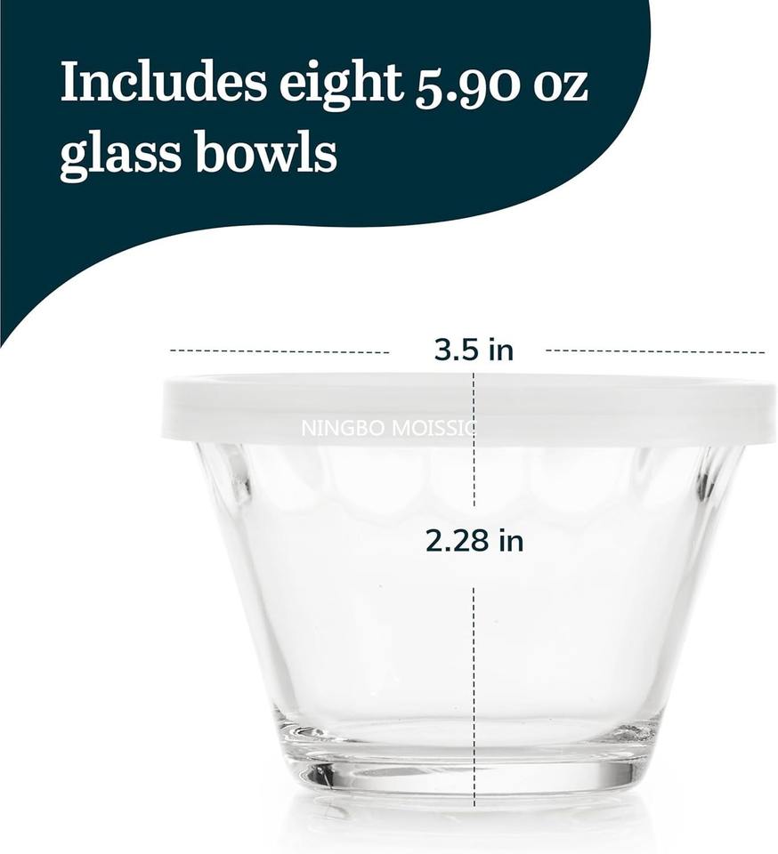 8-Piece Set of Polished Glass Bowls with Lid Eco-Friendly Dishwasher Safe for Fruits and Meal Storage