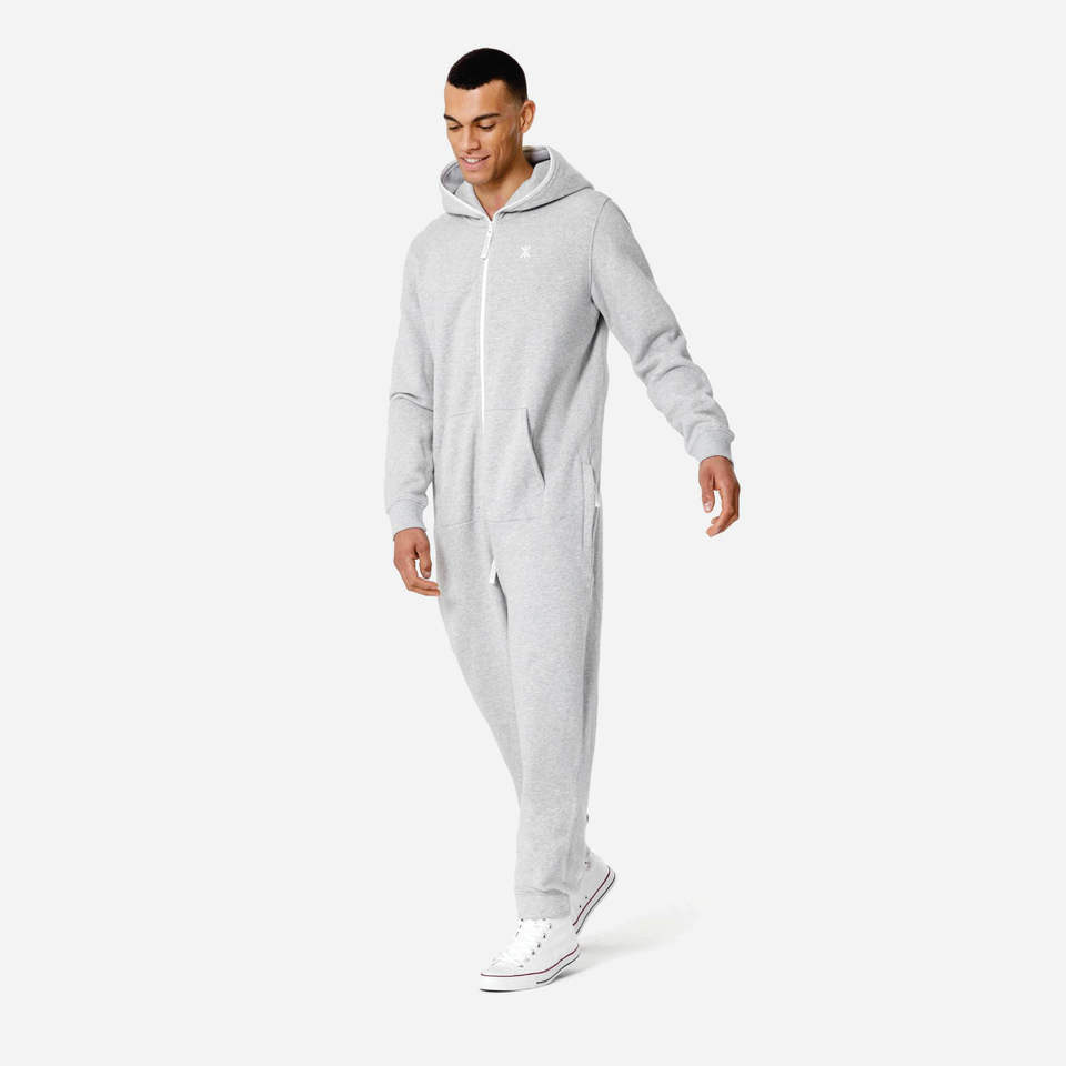 80% coton 20% Polyester dos brossé coton à l'intérieur fermeture éclair bidirectionnelle de qualité gris clair mélange unisexe Original Onesie