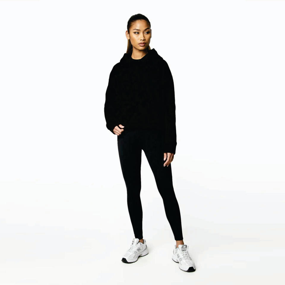 Sweat à capuche pour femme noir, coupe décontractée et courte, épaules tombantes, respirant, 80% Viscose 15% Polyester 5% Élasthanne