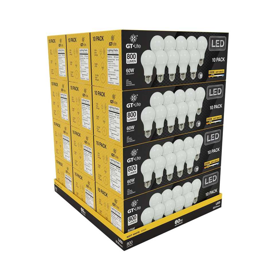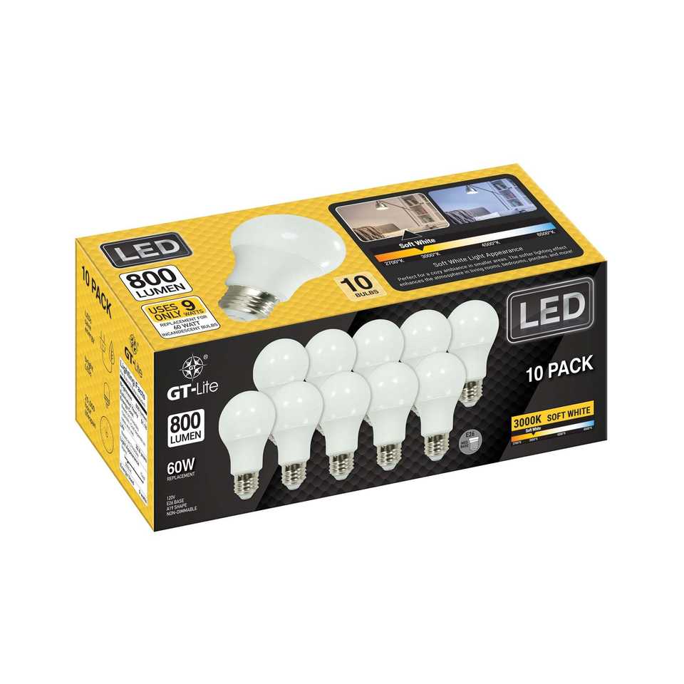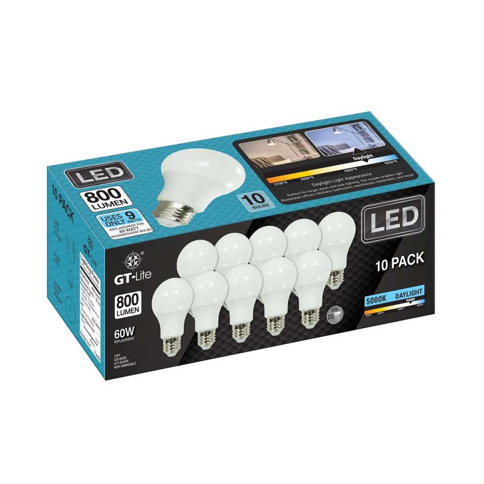 Ampoule LED A19 de 800 lumens, 9 watts, équivalent E26 de 60 watts, paquet de 10