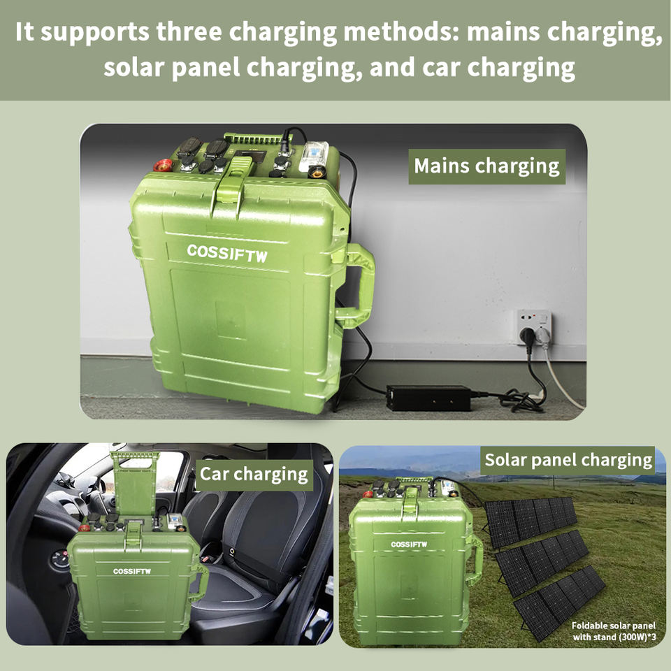 Adaptateur secteur, Voiture, Générateur de gaz, Panneau solaire, Autre, Port de sortie 48V/20A