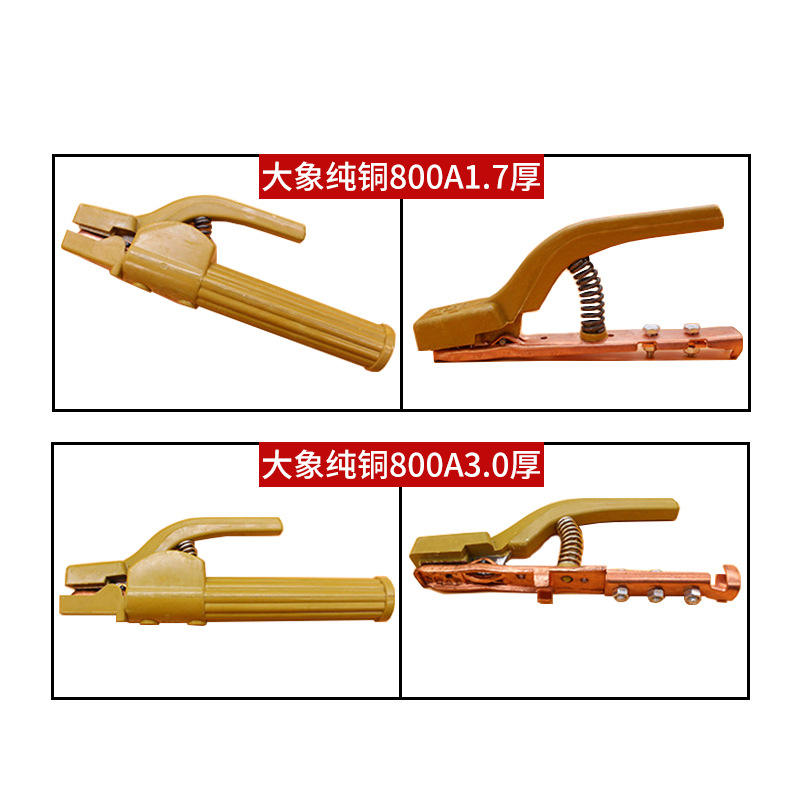 Pince à souder de type 800A, style éléphant, anti-brûlure, poignée en cuivre, électrode plaquée cuivre pur, épaisse